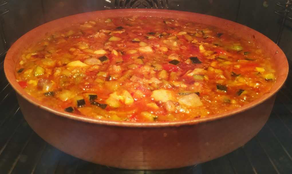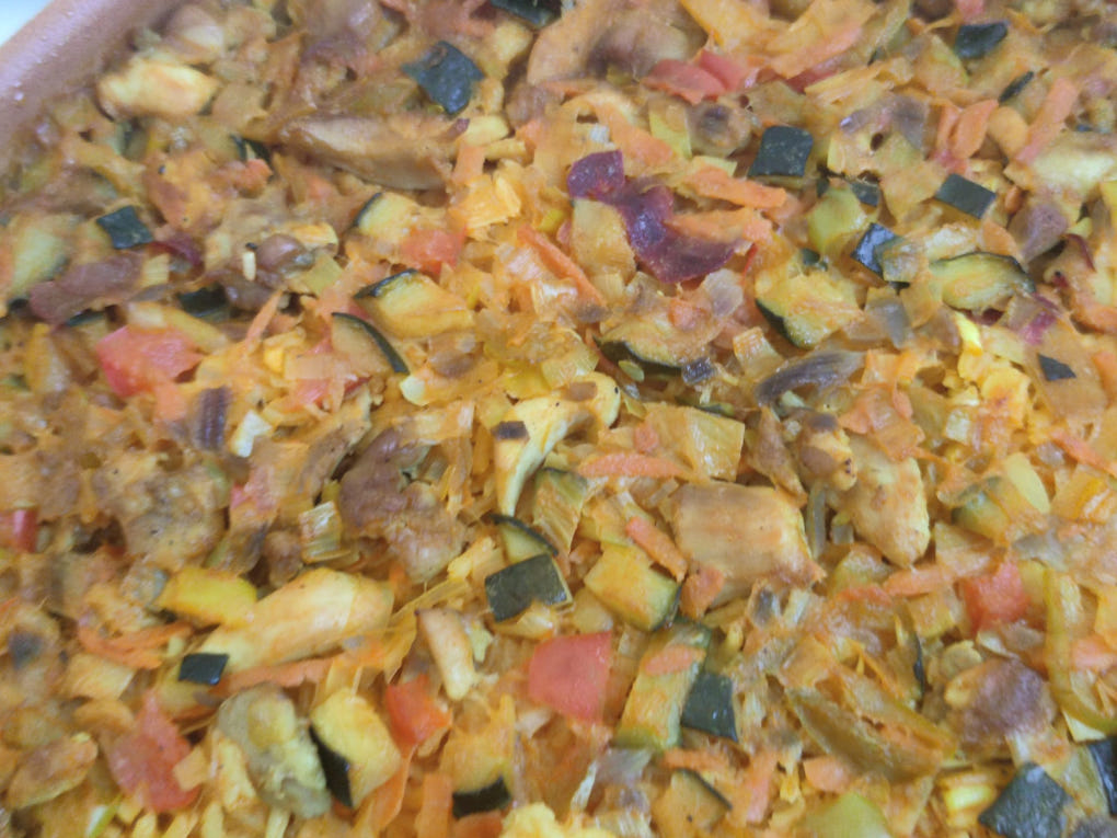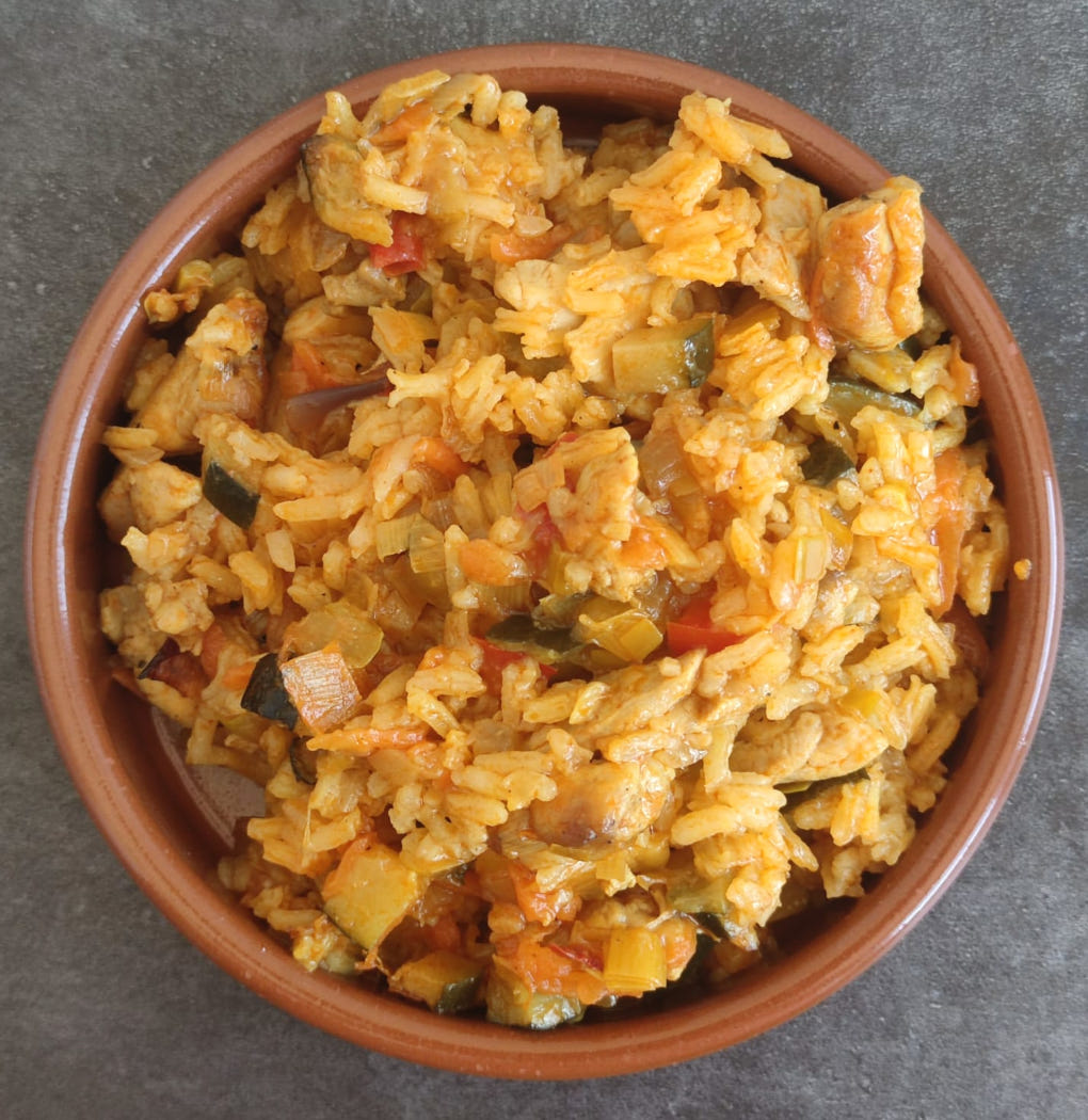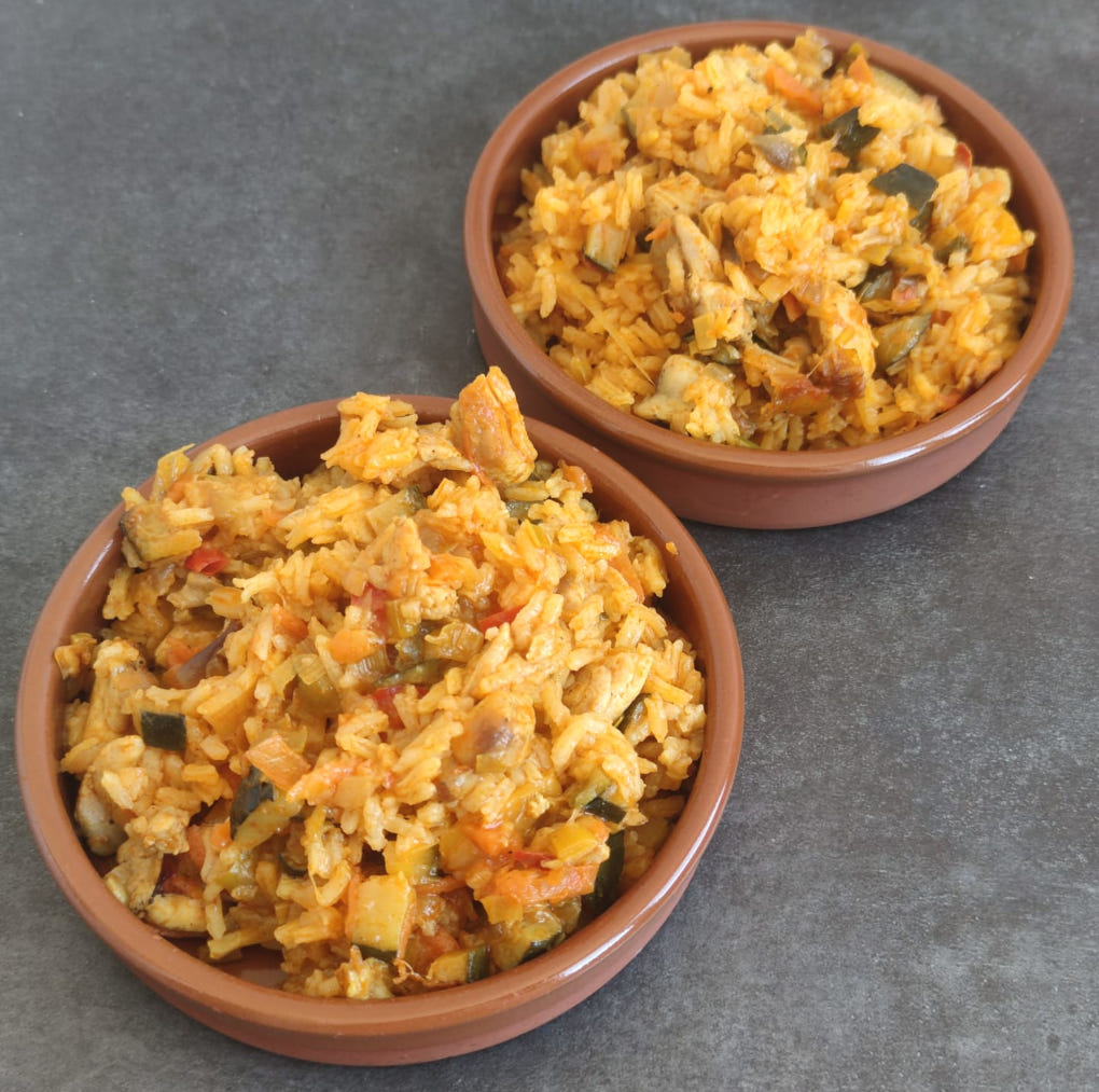 Arroz con verduras y pollo, realizado al horno. (Precio por plato).