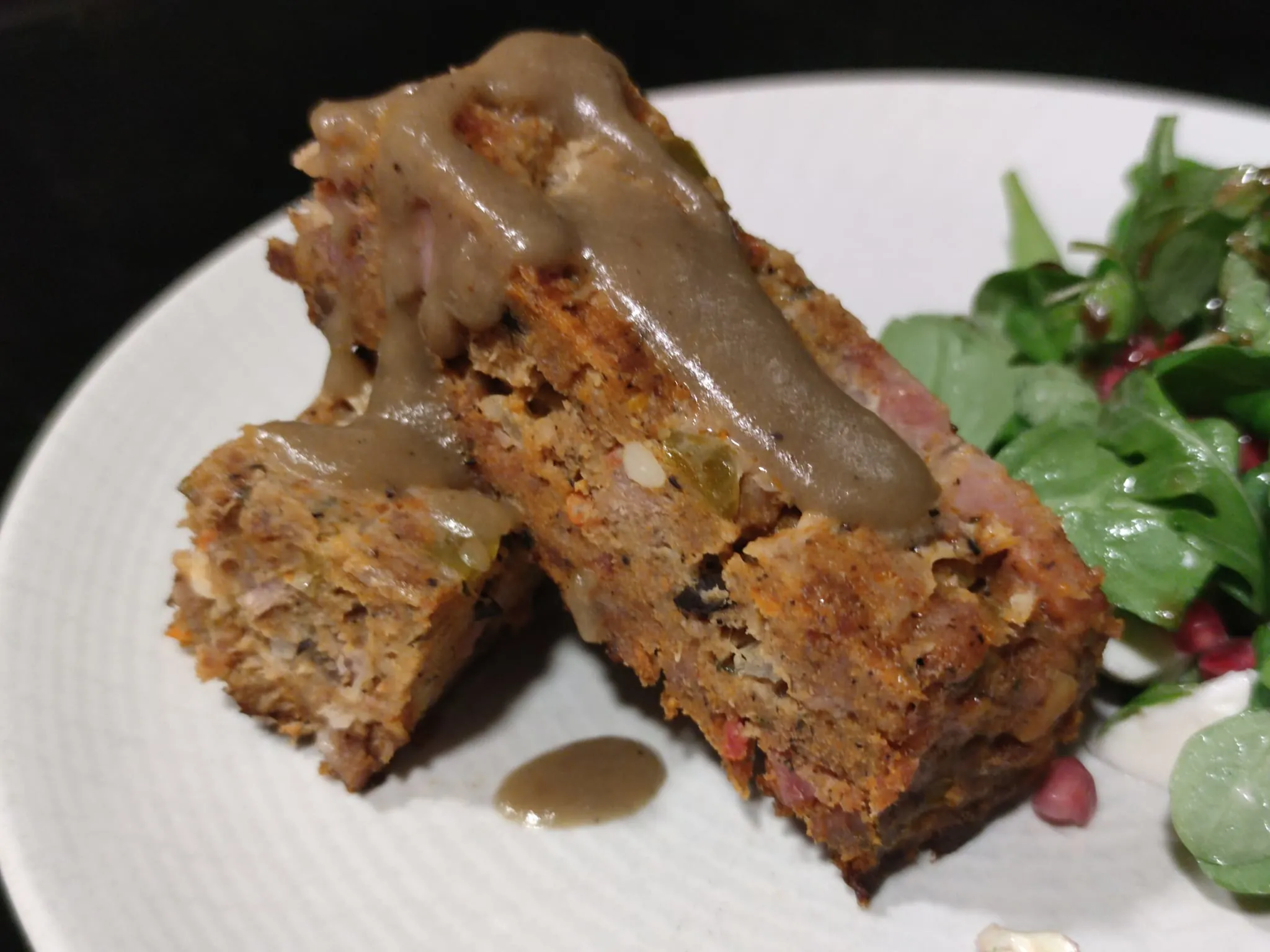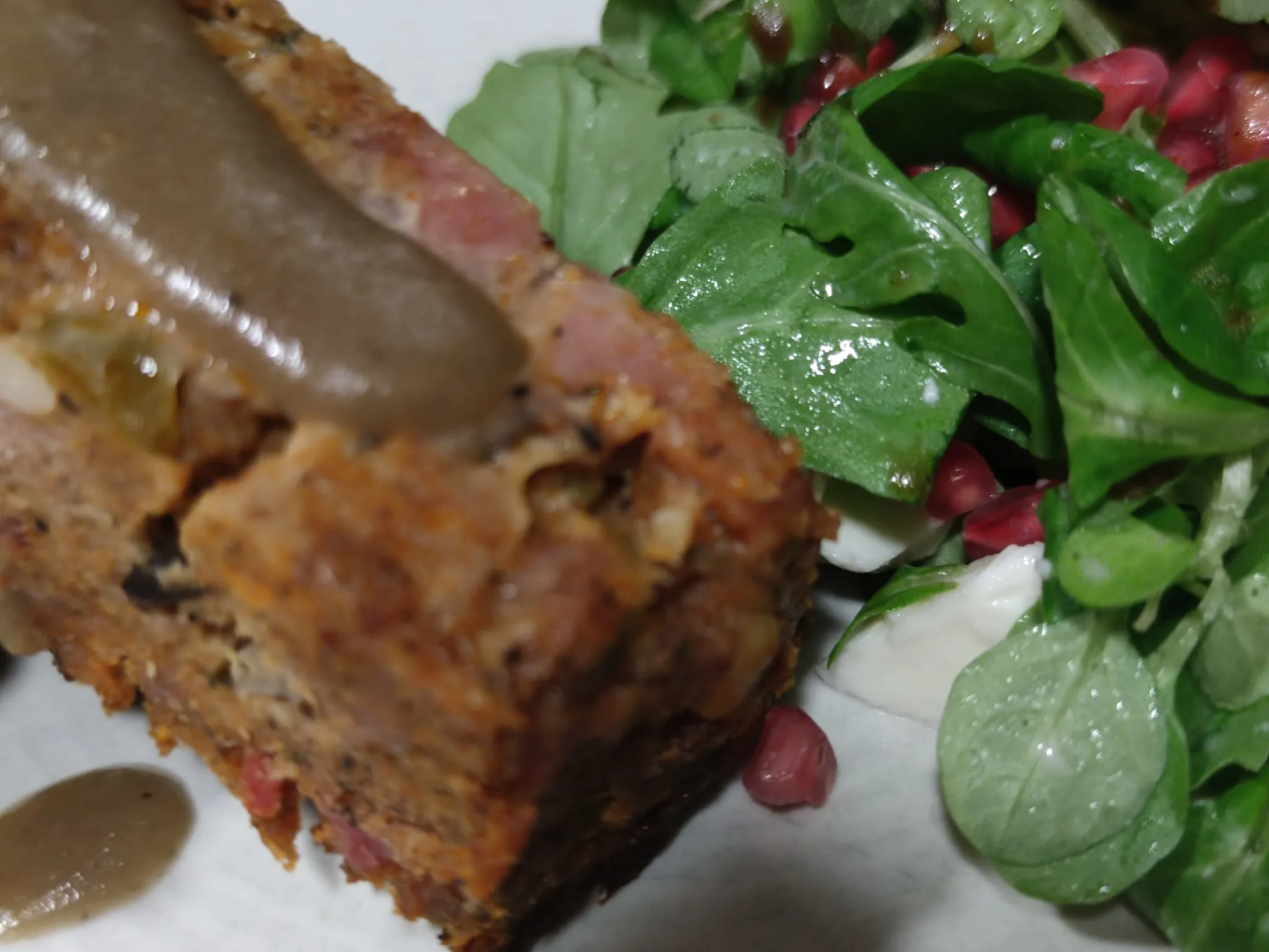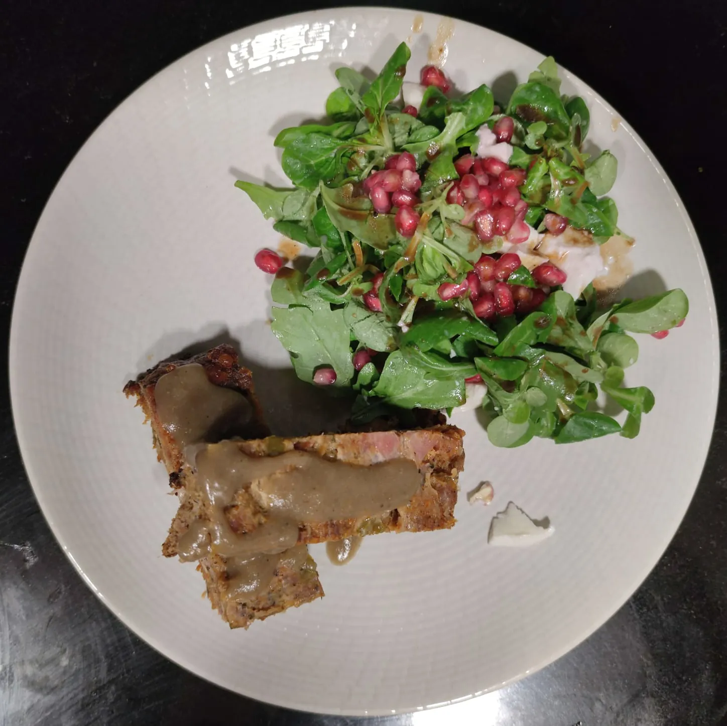 Un primer plato que te sorprenderá por la variedad de sabores, carnes (pavo, cerdo, vacuno) y el intenso e inconfundible aroma a trufa, todo ello al horno y acompañado de una ensalada de rúcula y canónigos con granada. Un acierto para disfrutar de algo nuevo para tú paladar.