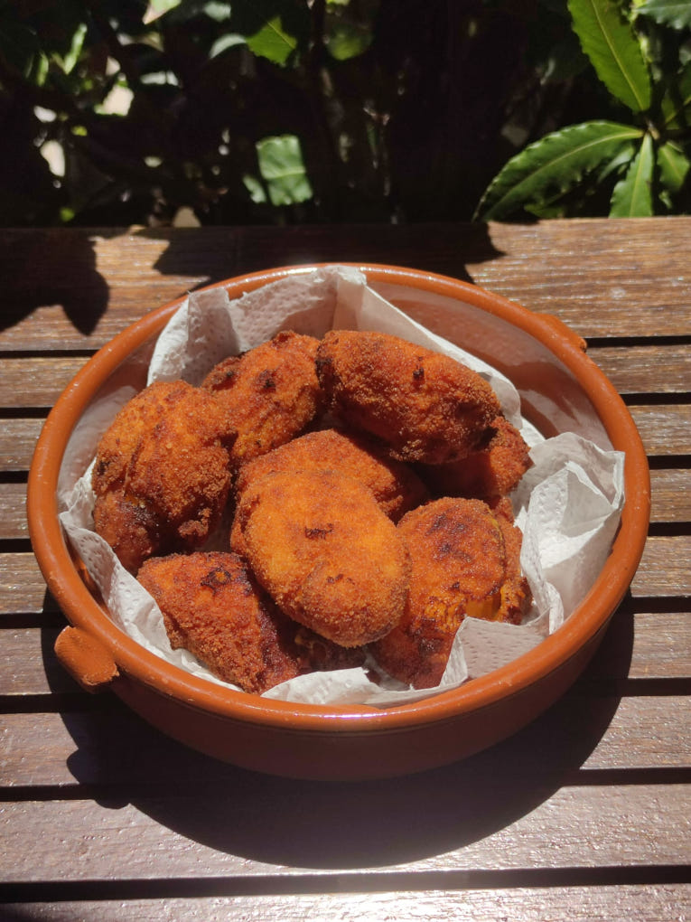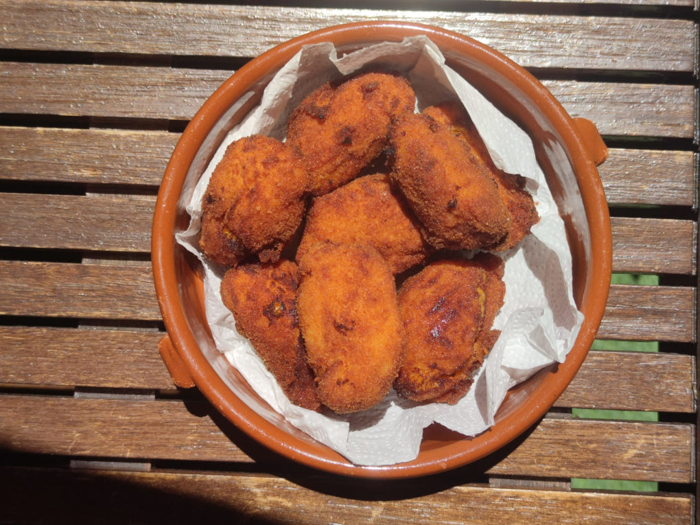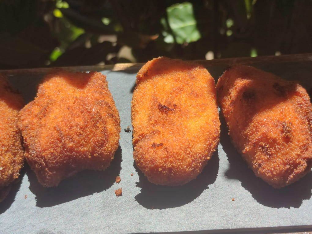 Croquetas vegetarianas con puerros, pimientos, cebolla morada, ajos, calabaza, etc. (Precio por unidad)