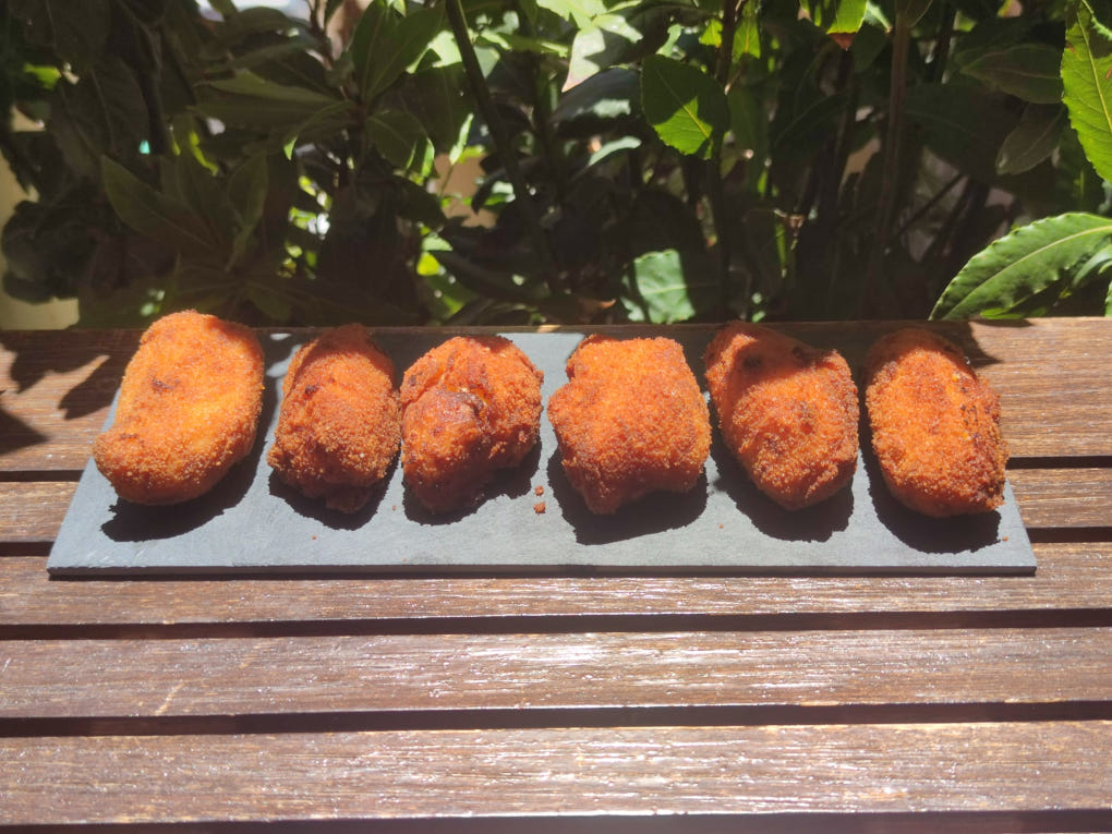 Croquetas de verduras variadas, los únicos ingredientes que no son de origen animal son: el huevo del rebozado y la mantequilla de la bechamel. El tamaño es muy aceptable, con siete es suficiente para que tenga un plato principal.