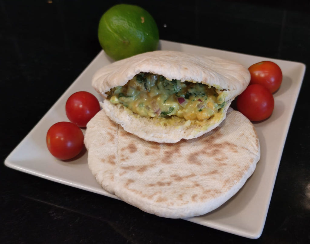 Pan de pita con ensalada y mahonesa de aguacate